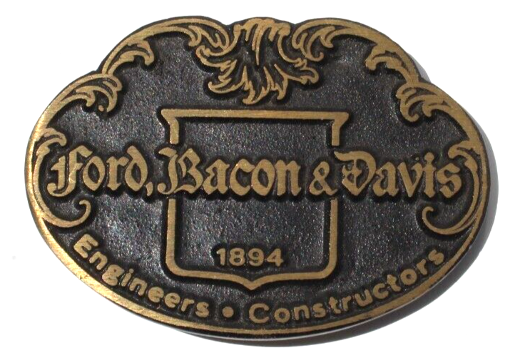 Vtg Ford Bacon & Davis Engineers Constructors Brass Blk Belt Buckle Dyna Buckles