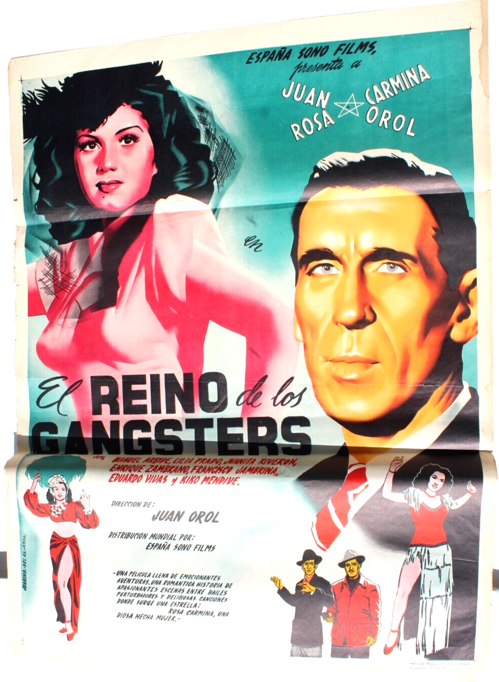 Juan Orol Rosa Carmina Renau art EL REINO DE LOS GANGSTERS Mexican Movie Poster