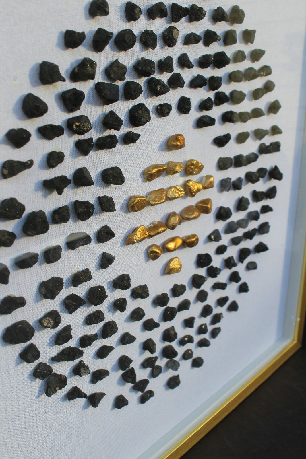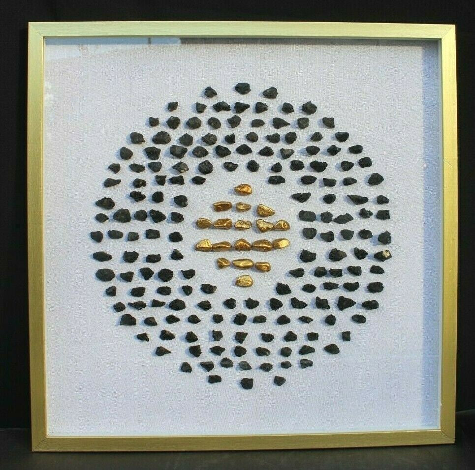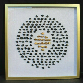 New Gold / Black Shadow Box Aztec Rocks Pebbles Decorative Wall Art Decor