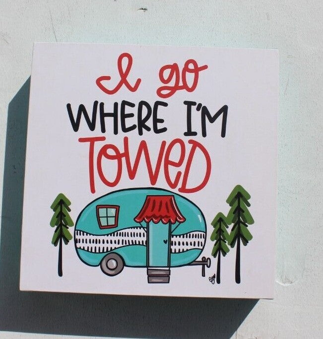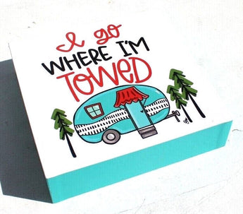 New I Go Where I'm Towed RV Camper Wall Decor Decor 6" x 6" Box Square