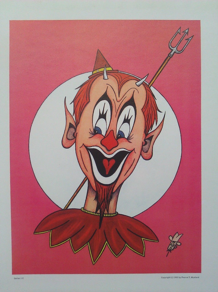 PEARCE MUSTARD 1965 Evil Circus Clown (Goth Devil) Lithograph Print Art Artwork
