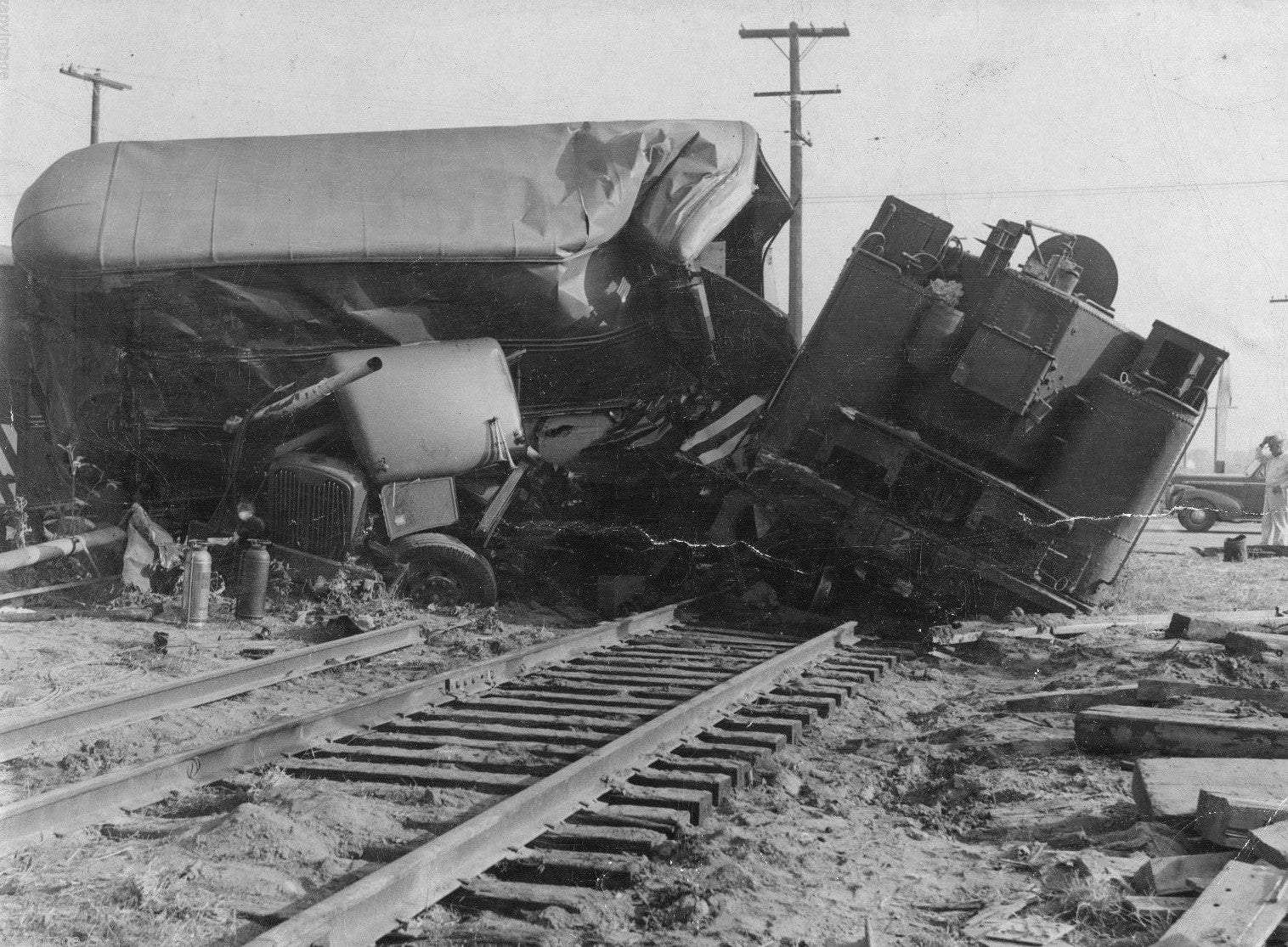 Vintage 1930's Train Collides With Car (Train & Car Crash) Photograph Photo