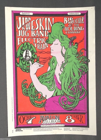 Vintage 1966 Jim Kweskin Jug Band Big Brother & The Holding Company Poster