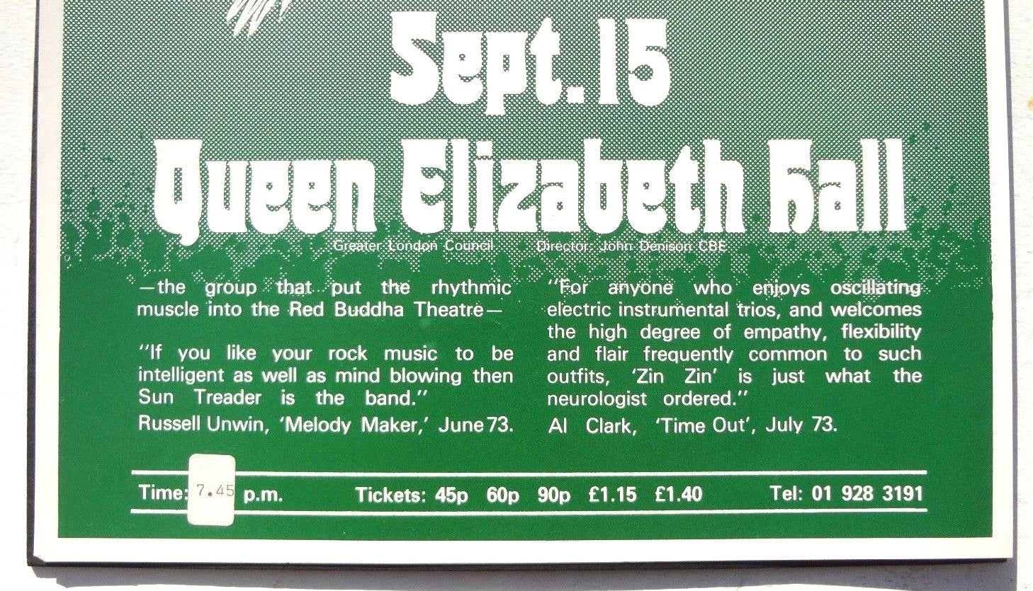 Vintage 1973 SUN TREADER Concert Tour FLYER / POSTER Queen Elizabeth Hall UK