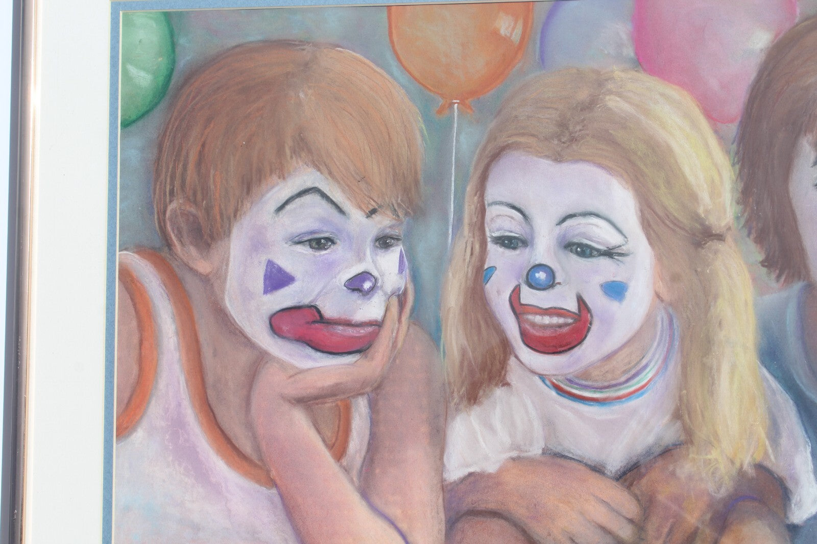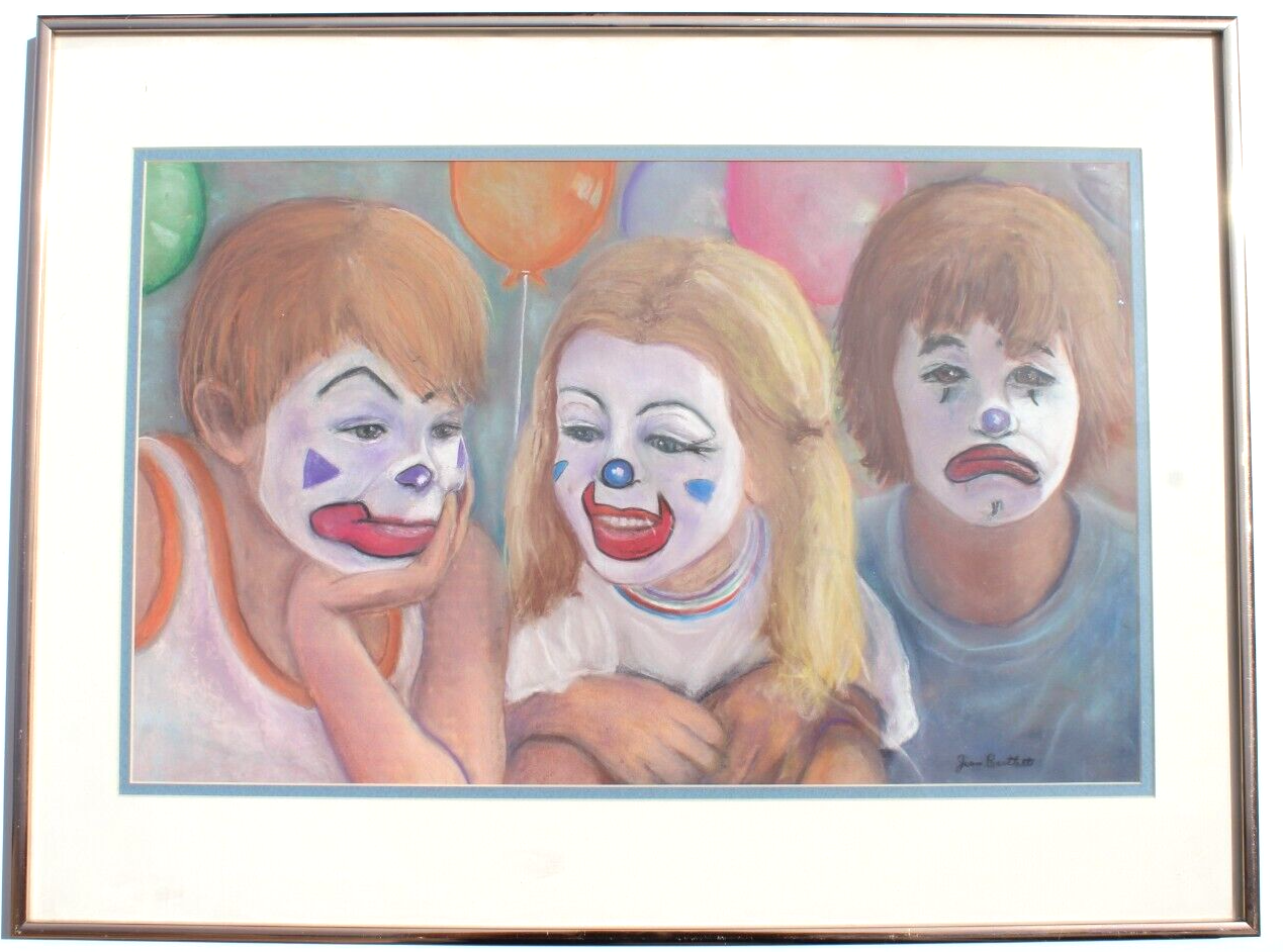 VINTAGE Joan Bartlett Soft Pastel  3 Circus Clowns KIDS CLOWN Wall Art