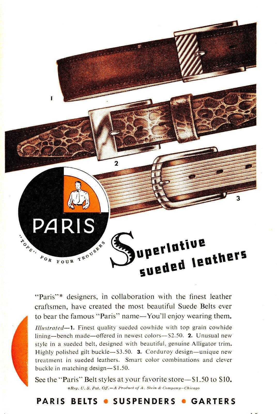 Vtg 1950s Paris Sueded Leather Belts Suspenders Advertisement Ad Photo #2891