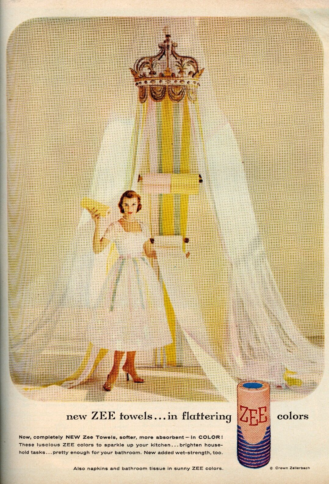 Vtg 1950s Zee Color Paper Towels Bathroom Kitchen Advertisement Ad Photo #2850
