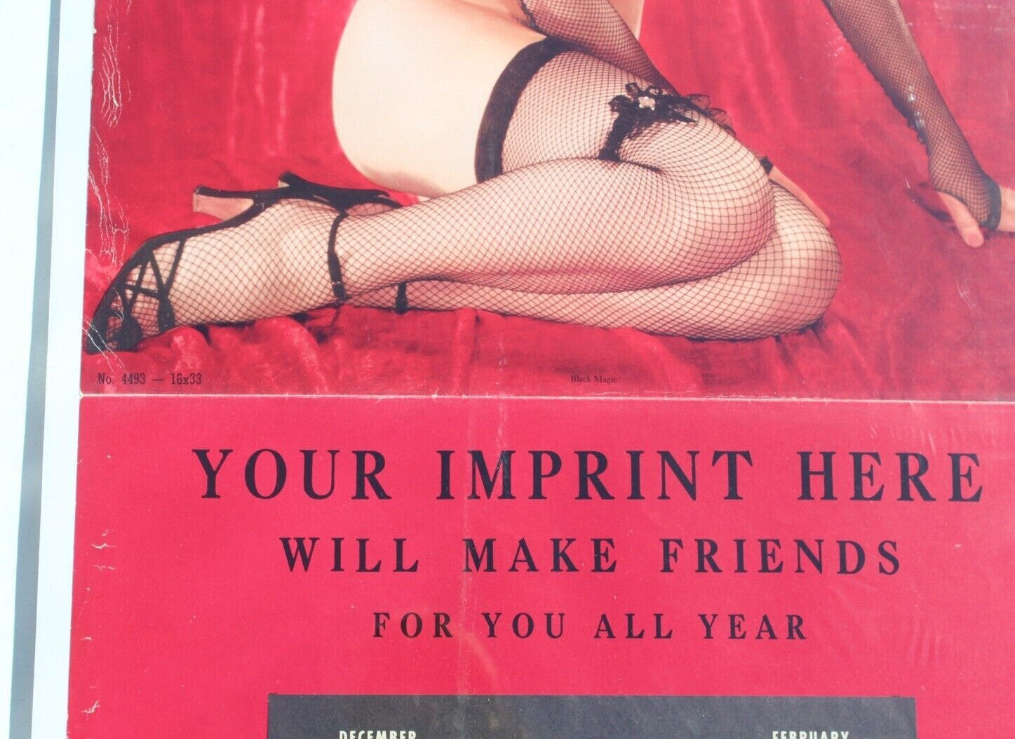 Vtg 1956 Salesman Sample Pinup Girl Calendar Nude 16 x 33 - Black Magic No. 4493