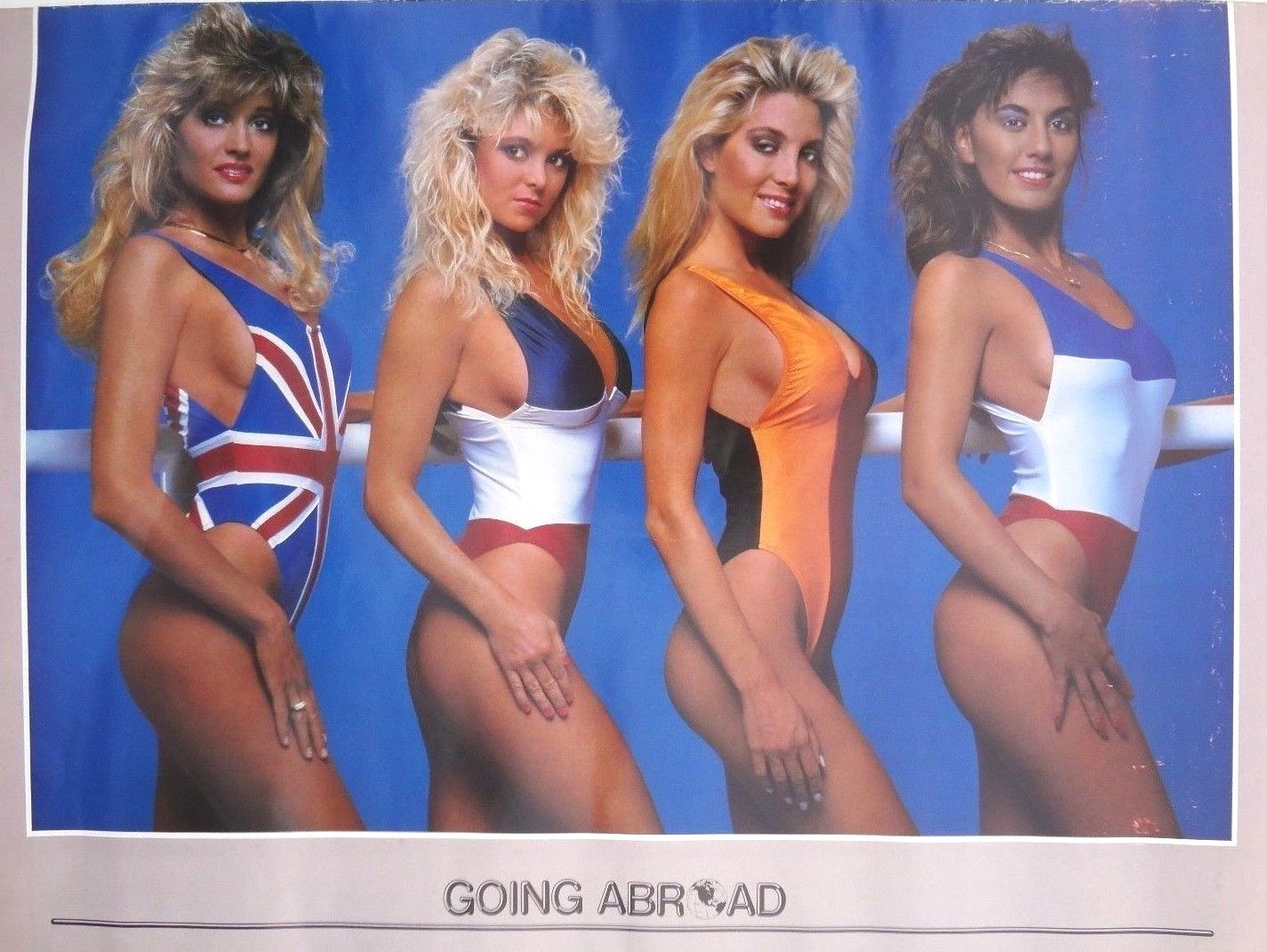 VTG 1986 Sexy Girls Man Cave Pin Up Bikini GOING ABROAD Front Poster 23X35