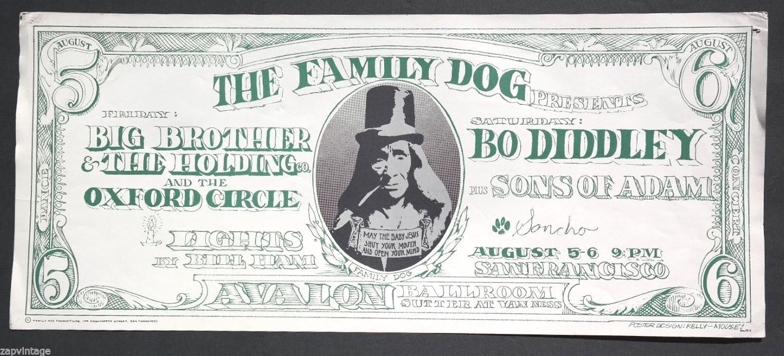Vtg Big Brother & The Holding Company Bo Diddley Family Dog Concert Poster