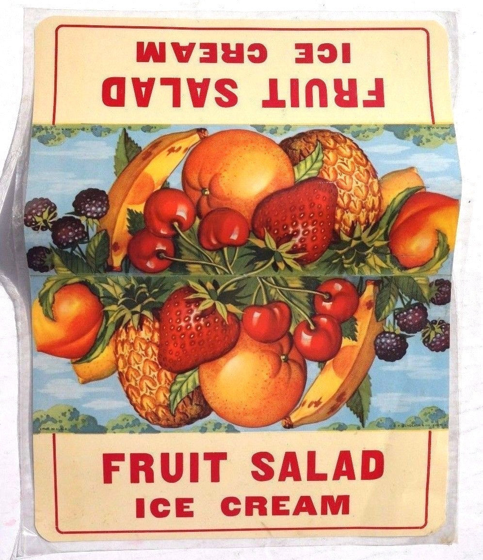 Vtg 1940 Fruit Salad Ice Cream Advertising Sign / Poster / Lithograph 13X17