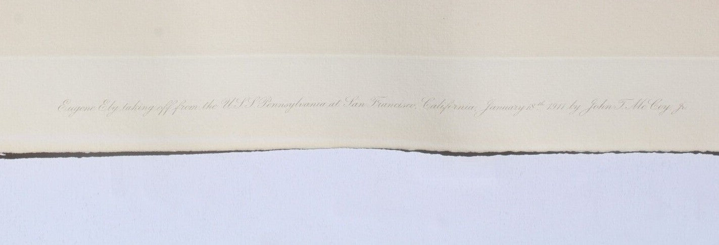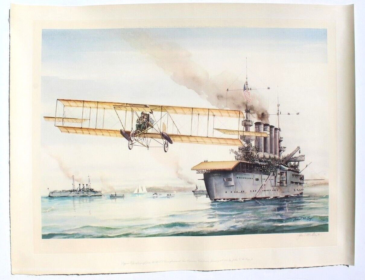 Vtg John T McCoy PENCIL SIGNED PRINT Art Poster Eugene Ely Taking Off From U.S.S