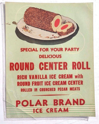 Vtg Round Center Roll Ice Cream Polar Advertising Sign / Poster / Lithograph