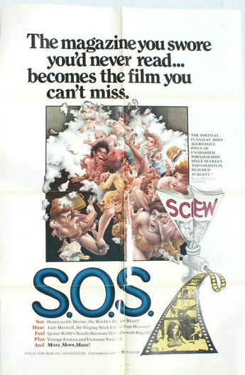 Vtg SOS S.O.S. Screw On Screen Melissa Evers Sexploitation 1 Sheet Movie Poster