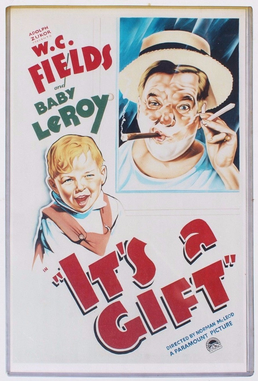 Vtg W.C. Fields And Baby Leroy It's A Gift Lithograph Movie Poster 11" X 17"