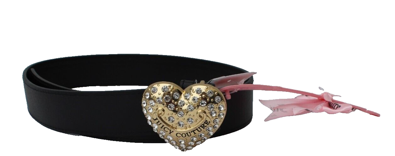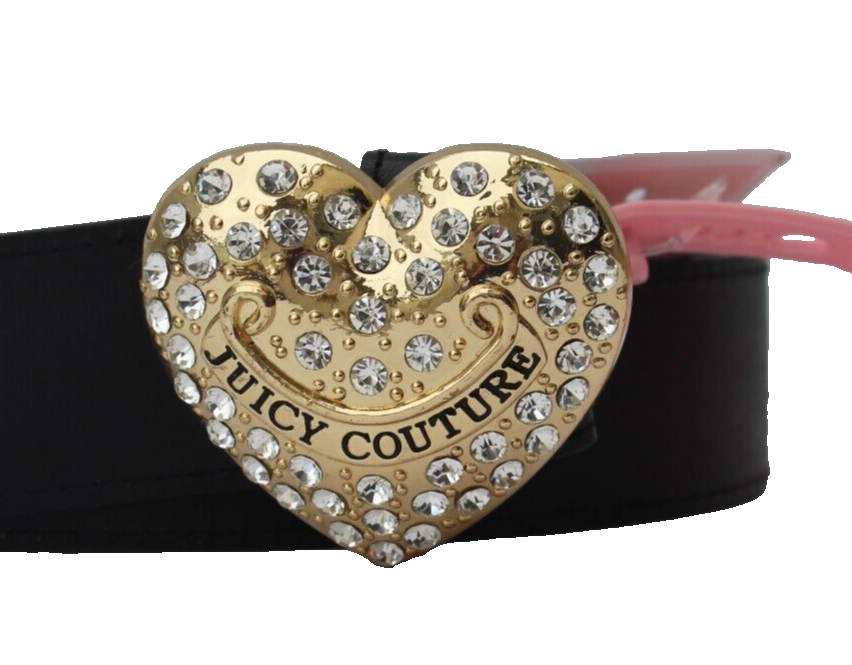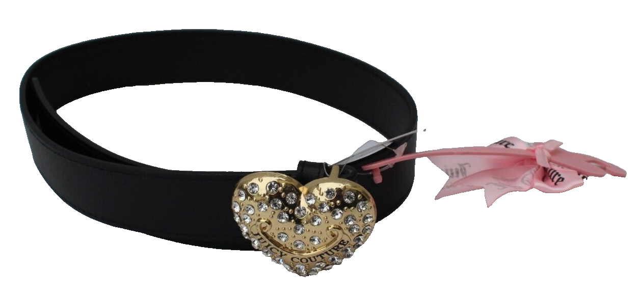 New Juicy Couture Belt Heart Buckle Rhinestone Women’s Size Small/Medium Black