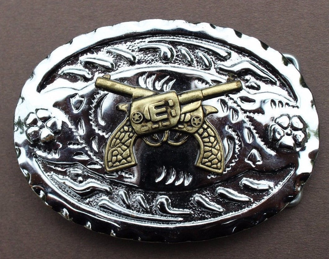 Vintage 2 Crossed Pistils Guns COWBOY Belt Buckle