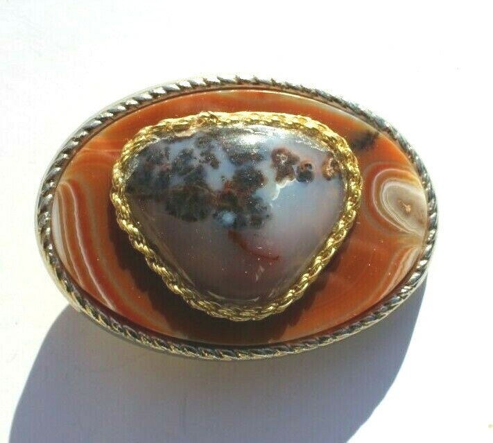 Vtg Hand Made South Western Belt Buckle (Agate Stone Geode Gemstone) #57