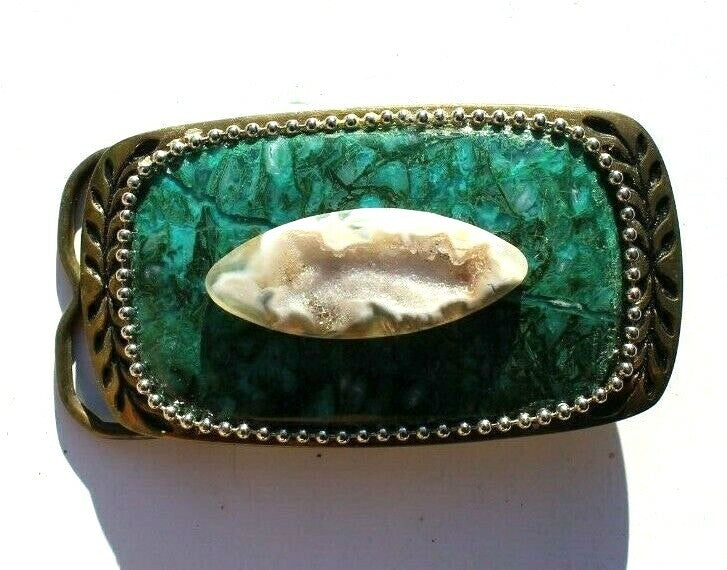 Vtg Hand Made South Western Belt Buckle (Agate Stone Geode Gemstone) #62