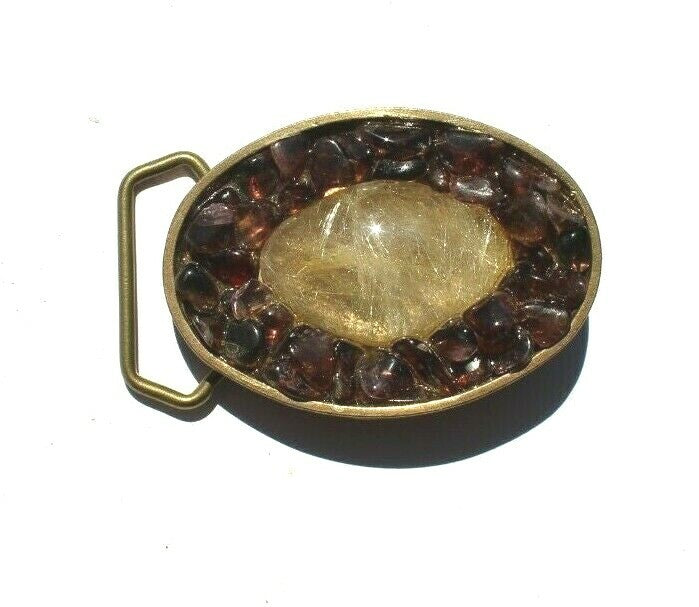 Vtg Western Cowboy Belt Buckle Jewelry (Agate Stone Geode Gemstone Crystal) #82