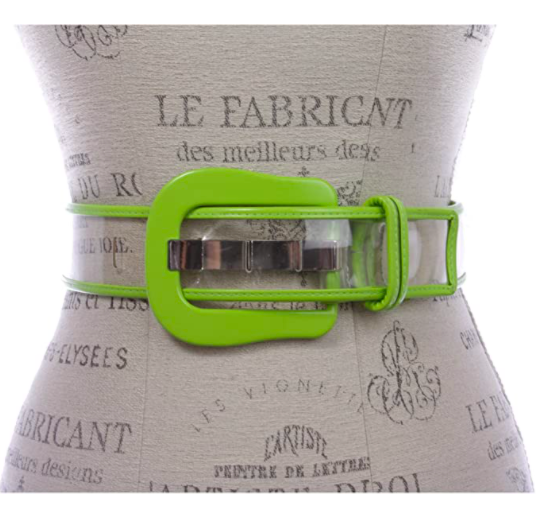 Women's Retro Buckle Color-Trimmed Patent Leather Green Fashion Jelly Clear Belt