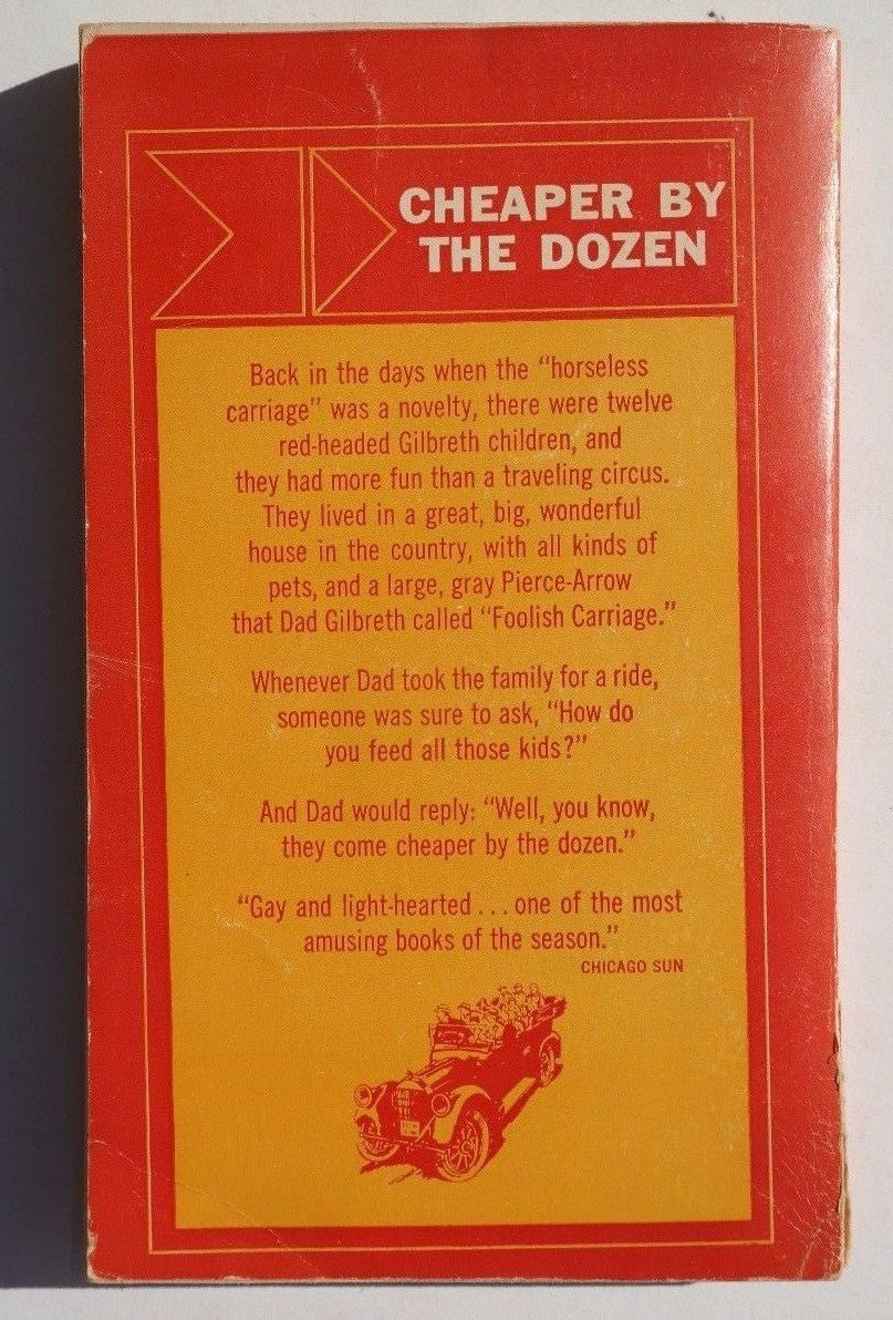 Vintage 1965 CHEAPER BY THE DOZEN Frank B/ Gilbreth Jr. Book 16th Printing