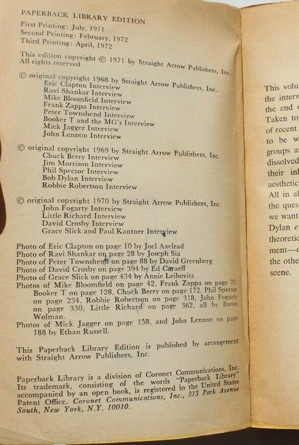 Vintage April 1972 The Rolling Stones Interviews Paperback Library Book