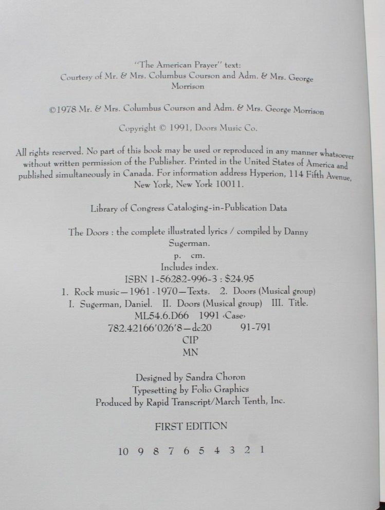 Vtg 1991 The Doors : The Complete Illustrated Lyrics, Hardcover Book
