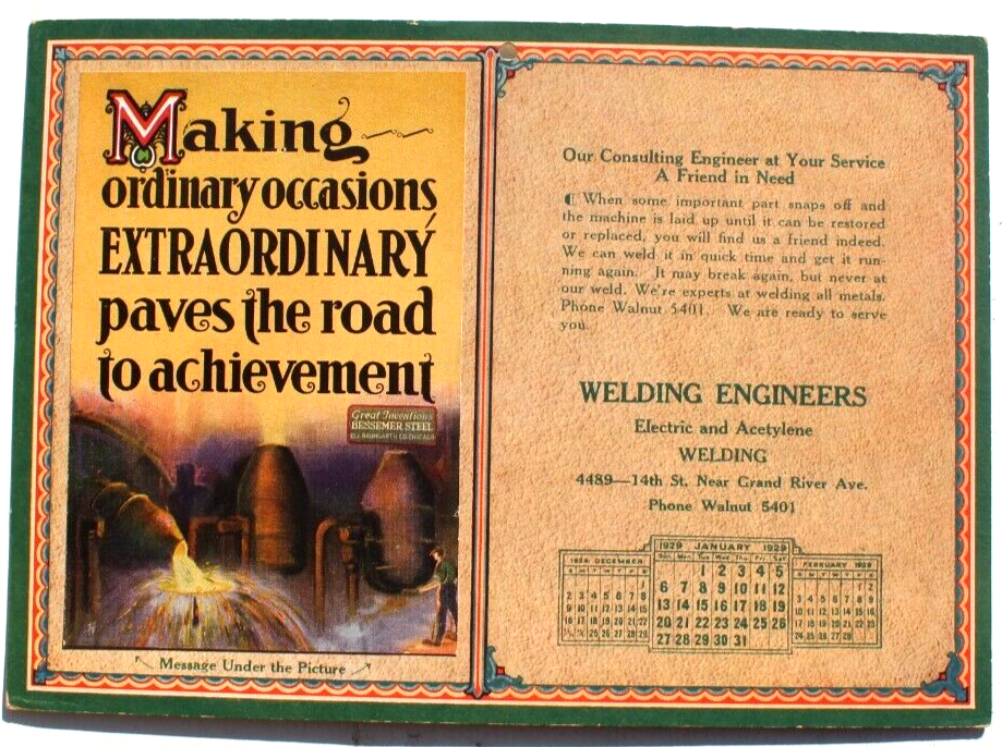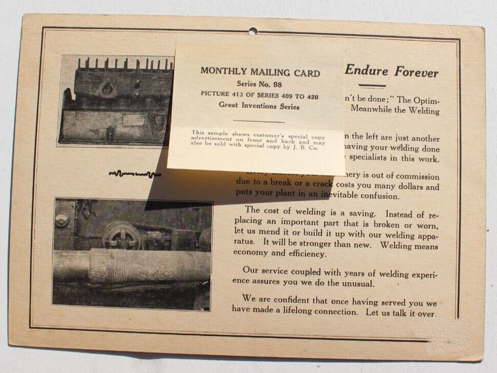 Vtg 1926 Welding Engineers Satisfactory Month Mailing Card Calendar Sample