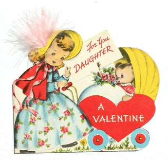 Vgt 1940's For You Daughter Valentine's Day Greeting Card (Real Feather)
