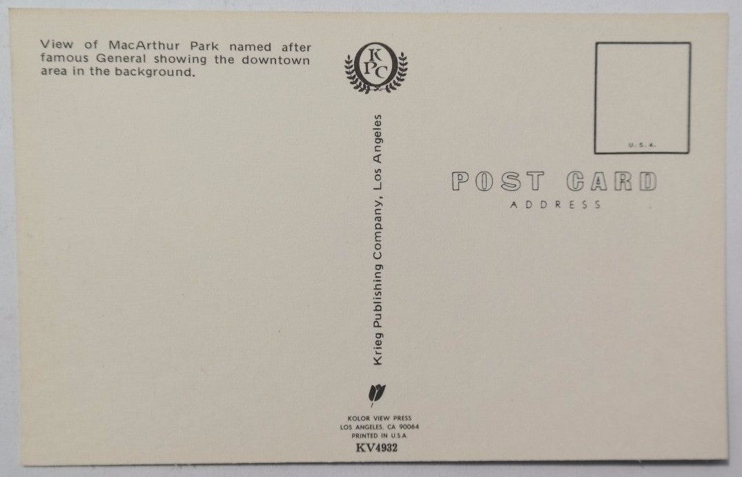 Vtg 1960 MAC ARTHUR PARK (Downtown) Los Angeles CA California POSTCARD