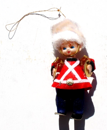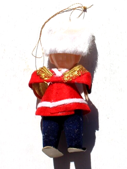 Vtg PLASTIC & FELT Christmas Tree Ornament BAND LEADER Solider Playing Symbols