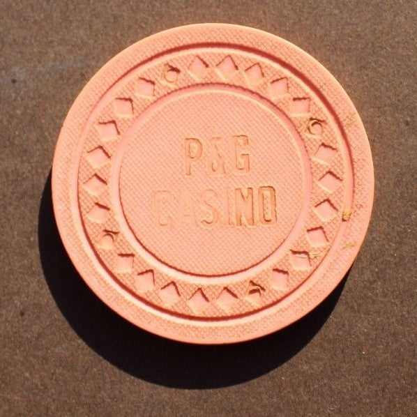 RARE Vtg Poker / Casino Clay Chip - P&G Casino, Petaluma California ($5)