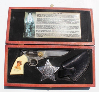 Vintage Collectable Billy the Kid Collectible Pocket Knife Set in Wood Case
