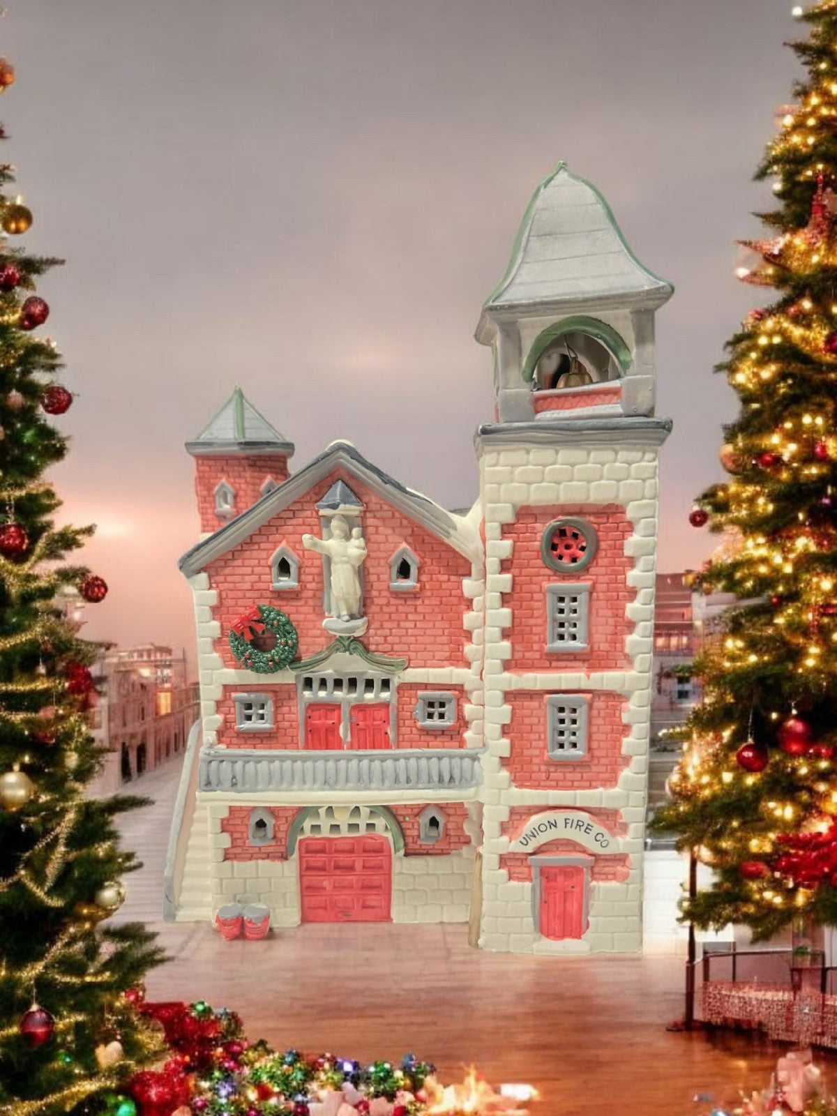 Vtg 1993 Lemax Dickensvale Collectibles Union Fire Co Company Lighted Fire House