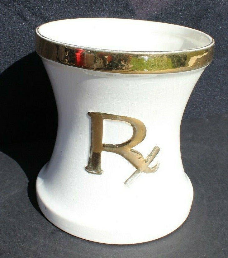 Vtg Antique Ceramic Pharmacy Mortar Pestle Set Rex Ceramics Jar Container