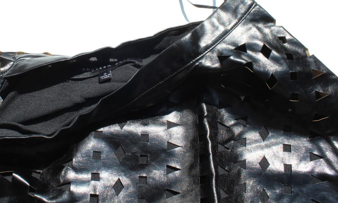New English Rose Black Gothic Rocker Faux Leather Mini Skirt Small NWT