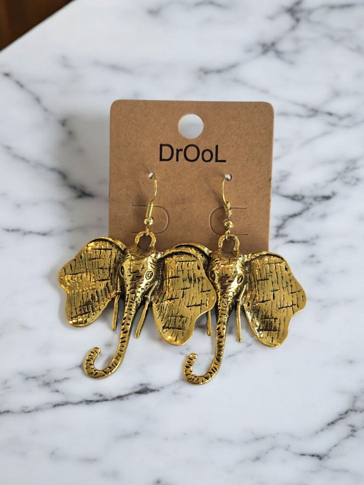 New BEAUTIFUL Jungle GOLD ELEPHANT African Animal Pierced EARRINGS