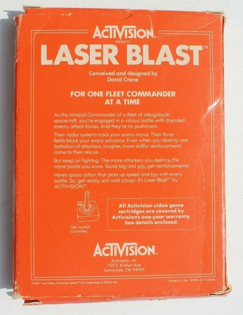 Vtg 1981 Activision LASER BLAST (AG-008) Atari 2600 Video Game Cartridge