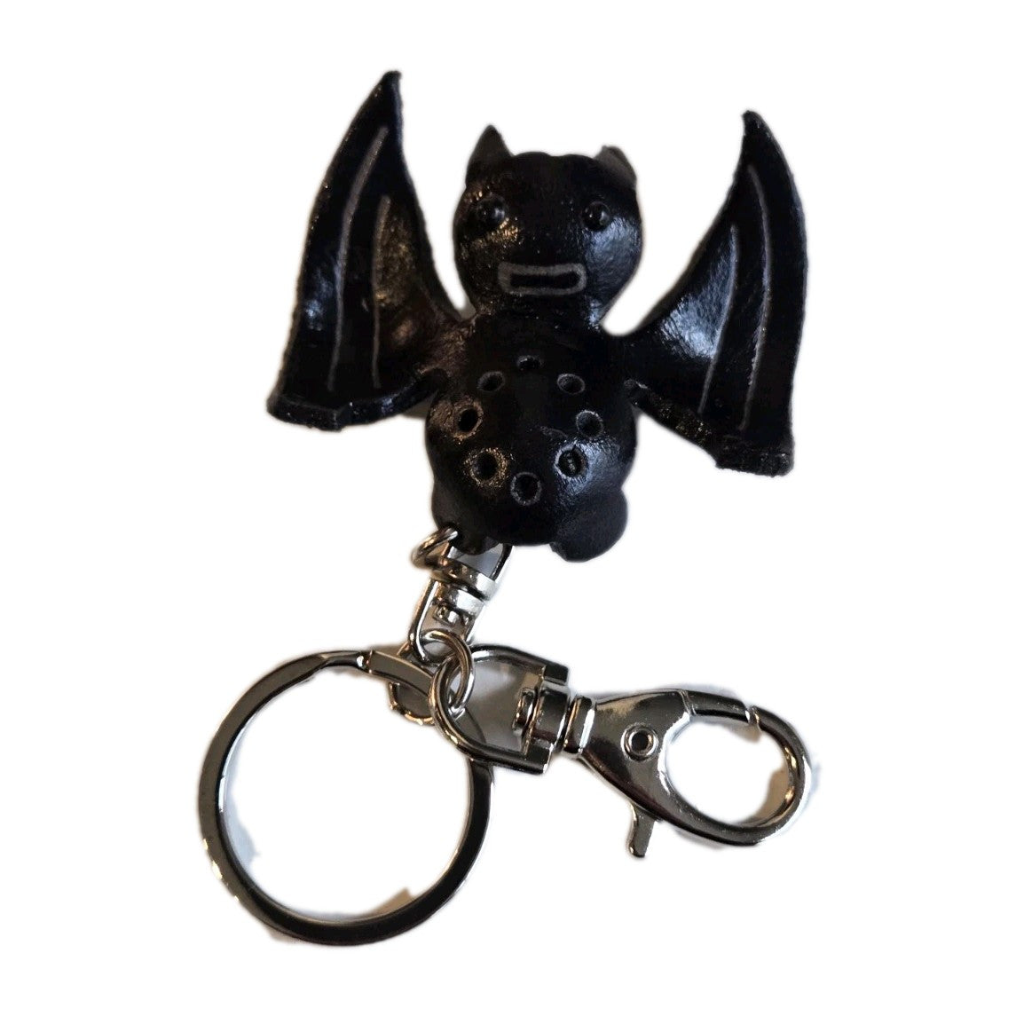 New Black Bat Halloween Animal Handmade 3D Leather Key Chain Gift Birthday