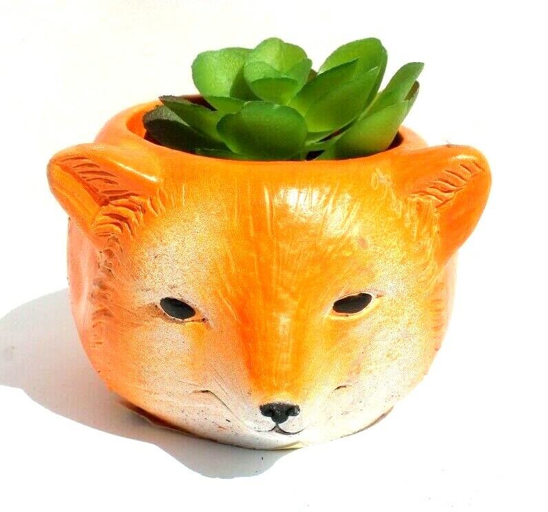 NEW Fox Face Thanksgiving / Halloween Ceramic Planter Plot W/ Succulents