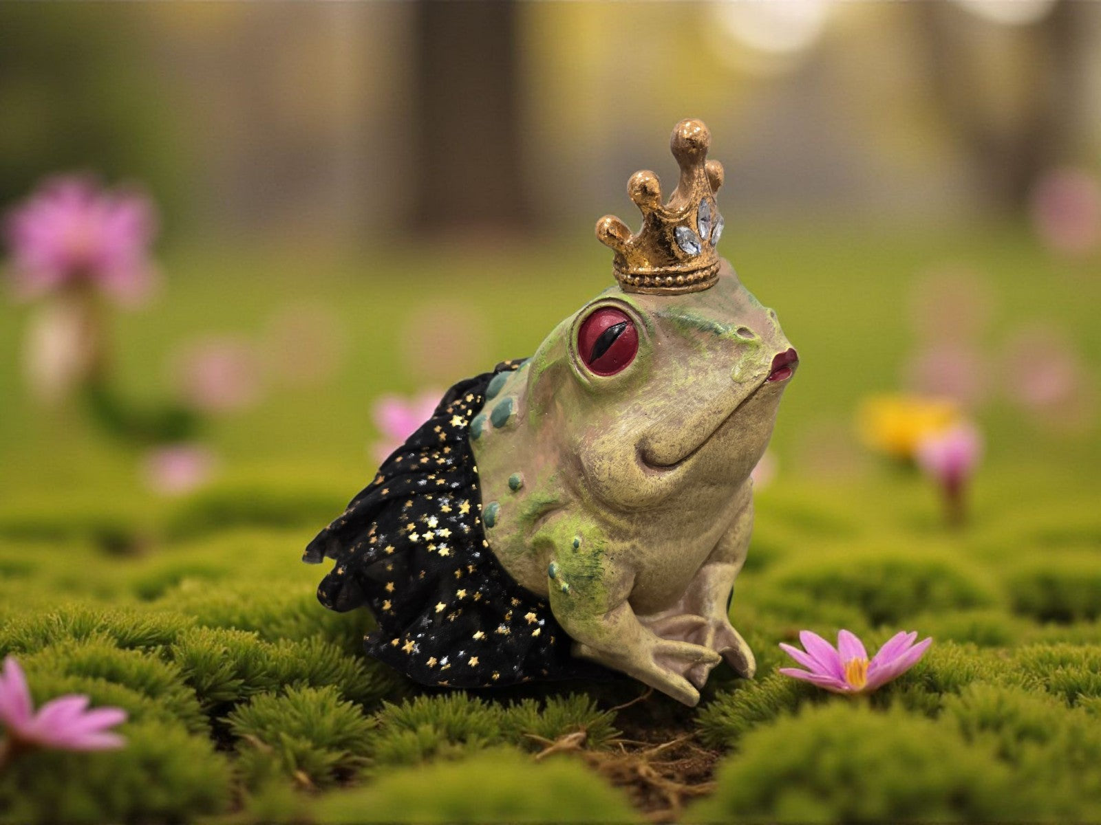 Introducing the new Halloween Green Frog with Princess Crown figurine, perfect for adding a whimsical touch to your holiday decor. This medium-sized figurine features a green frog wearing a princess crown, making it an adorable addition to any room during the Halloween season. The matte finish adds a realistic feel to the piece, making it a charming accent for your home.