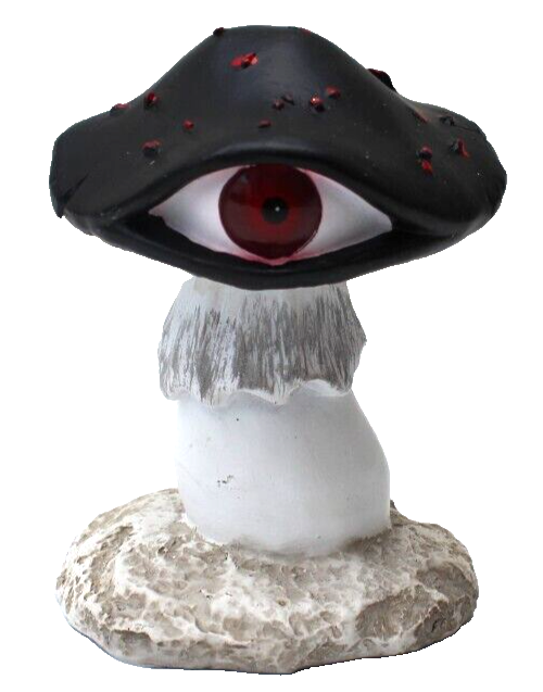 New Halloween Scary Eyeball Black & Red Mushroom Figurine Tabletop Decor 4 1/2"