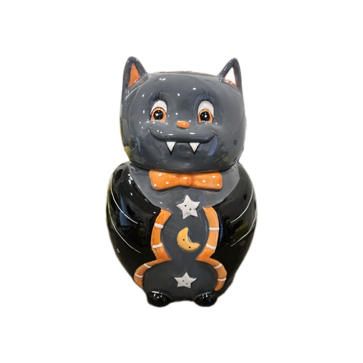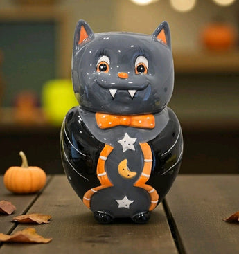 New Halloween Spooky Ceramic Vampire Bat In Suite Cookie Jar Decorative