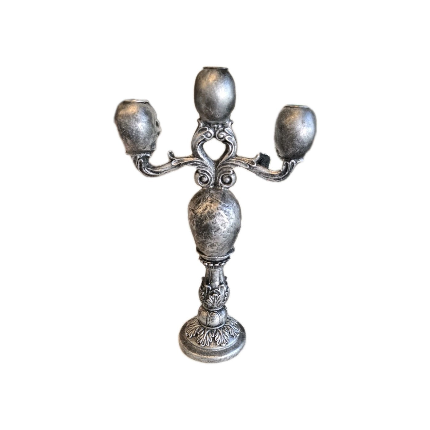 New Martha Stewart Home Halloween Skull Candelabra Silver 14 IN Candle Holder