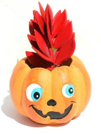 NEW Orange Happy Halloween Pumpkin Ceramic Planter Plot W/ Succulents