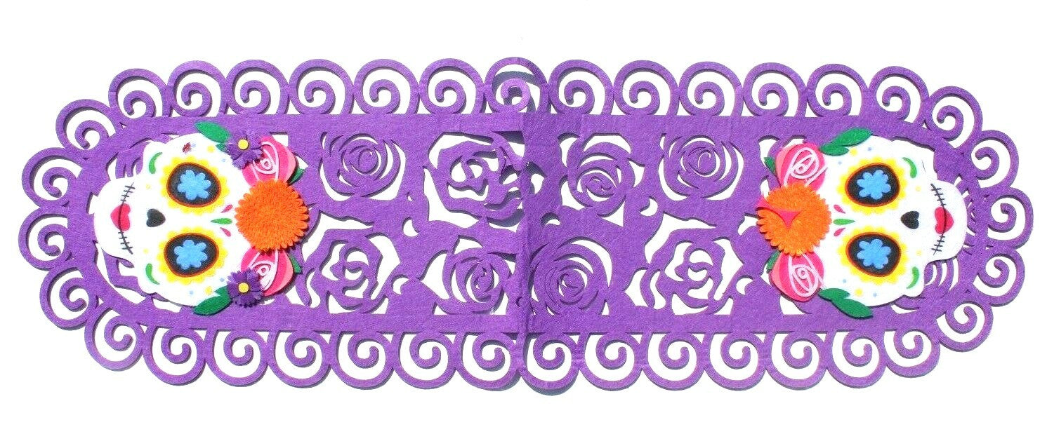 NEW Purple Sugar Skull Halloween Day of The Dead Halloween Table Runner