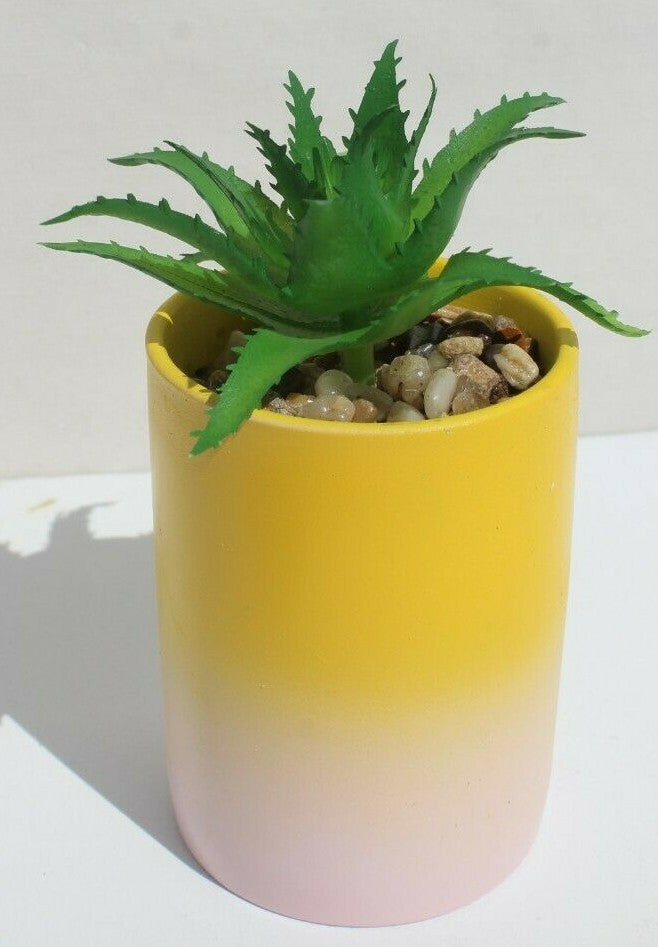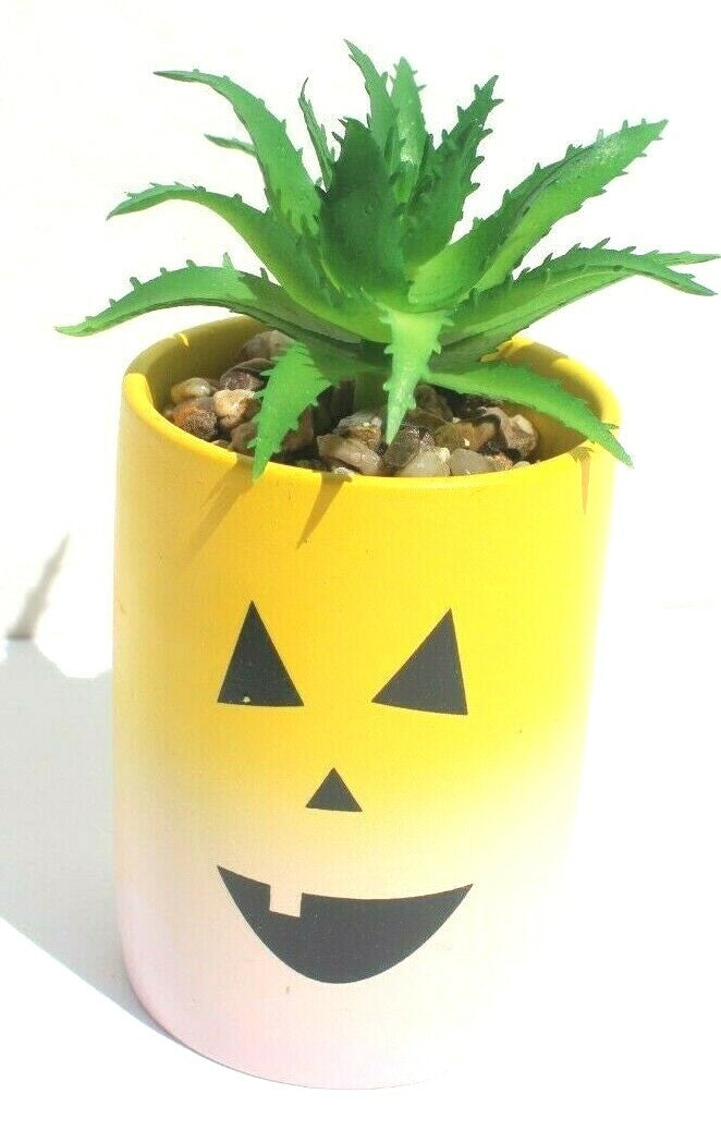 NEW Yellow / Pink Happy Halloween Pumpkin Ceramic Planter Plot W/ Succulents