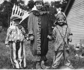 Vtg 1950 Kids In Halloween Costumes Trick Or Treat (Clown, Indian) Photo #2378