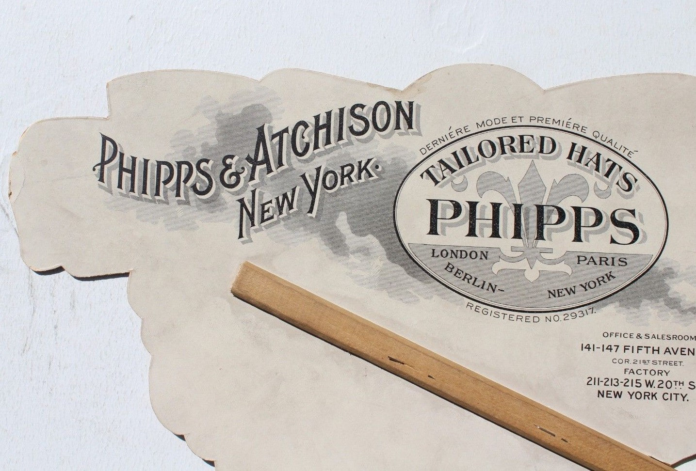 MEGA RARE Early 1900s Advertising Promo Hand Mask for Phipps & Atchison Tailored Hats